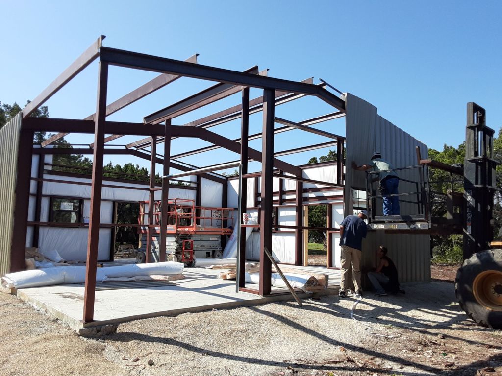 This workshop may not be all that large but it works well for another one of our Arbor Building customers. It is part workshop for the husband and part storage for his wife. That way way everyone is happy! If you notice all the white powder on the ground it is because we had to excavate our concrete footing into solid rock. It sure isn’t going anywhere! This is just another example of how we aim to please. We could have suggested elevating the building about another 16″ when we constructed the dirt pad to avoid the rock. That would just cost our customer more money and would have made the building appear much to tall and large for the backyard! So instead we used a rock bucket on the backhoe and were able to excavate for our footings. We understand that a building is only as good as the foundation it is attached to. This is why we construct all our foundations as commercial duty and the same goes for the materials we use.